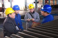 5月29日下午,记者常德宝冒着高温酷暑来到重型容器厂,此时该厂老车间里王乾德、马玉刚、刘新光、赵福顺、宋继文等员工正在将加热到930℃的钢板进行卷圆。记者快速摄取了这组镜头。